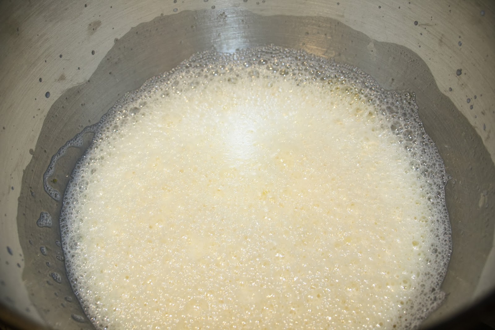 Whisk the egg yolks, sugar and salt for the chocolate custard until creamy - I used my KitchenAid to do the job.